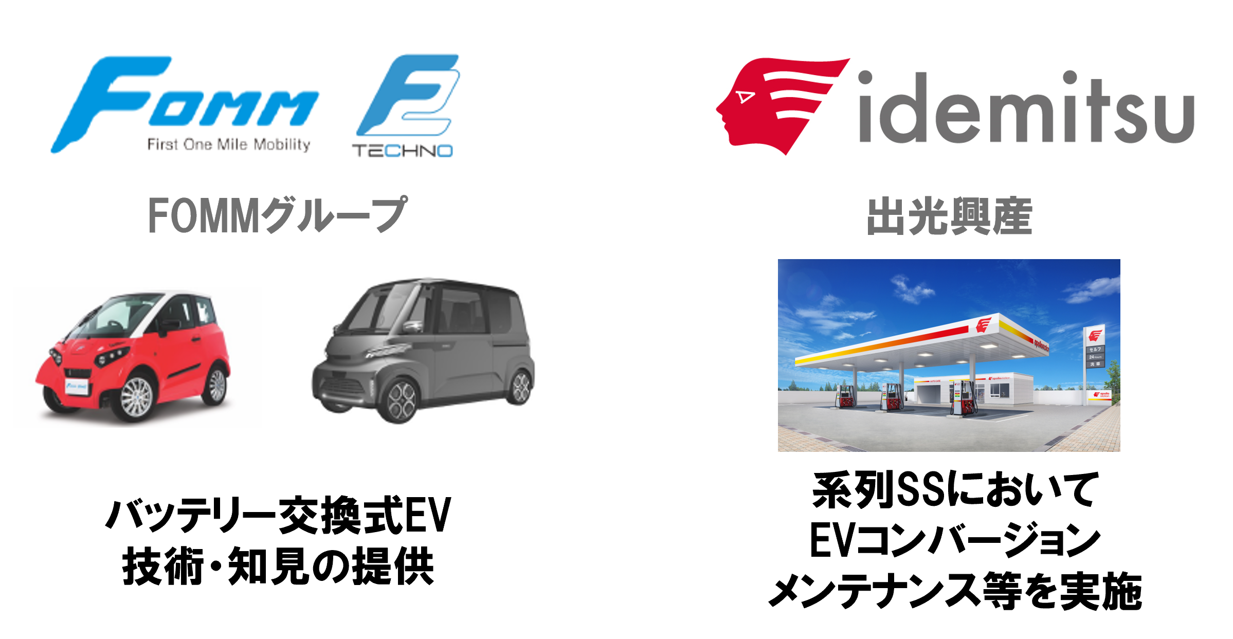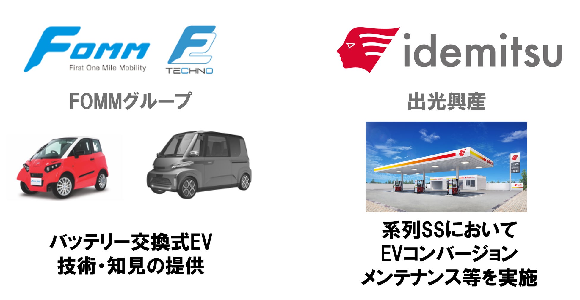このような環境の変化に対して、当社はバッテリー交換式EVに関する技術と知見を有するFOMMと協力して、EVに関連する多様なサービスとネットワークの拡充を実現していきます。