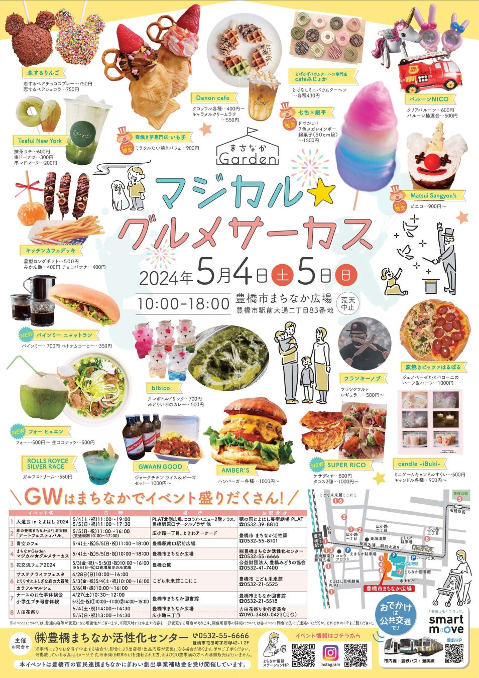 いよいよゴールデンウイーク(GW)がやってきます。愛知県豊橋市のまちなかは、イベントが盛りだくさん。おなじみになった大道芸をはじめ、花のイベント、歩行者天国など子どもから年配の人まで楽しめる催しが開催されます。もちろんグルメイベントもあるので、街の中を歩いて見て、食べて満喫。GWは豊橋へ繰り出そう!
