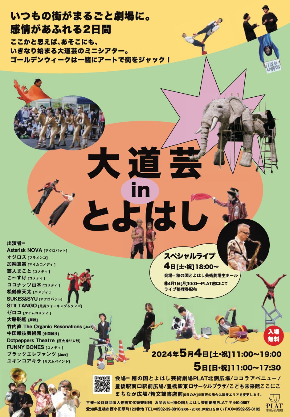 大道芸のスケジュールは穂の国とよはし芸術劇場PLATのホームページをご覧ください