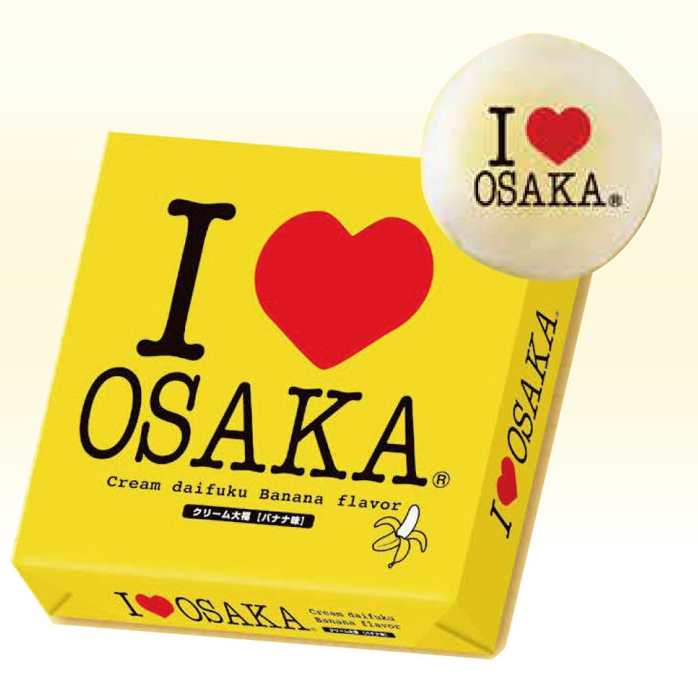 アイラブ大阪のロゴがプリントされたクリーム大福。バナナあん&ホイップクリーム入り。
