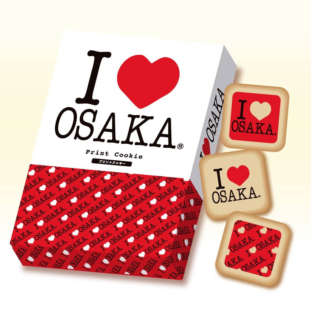 アイラブ大阪のロゴ3パターンのデザインがプリントされたサクサククッキーです。