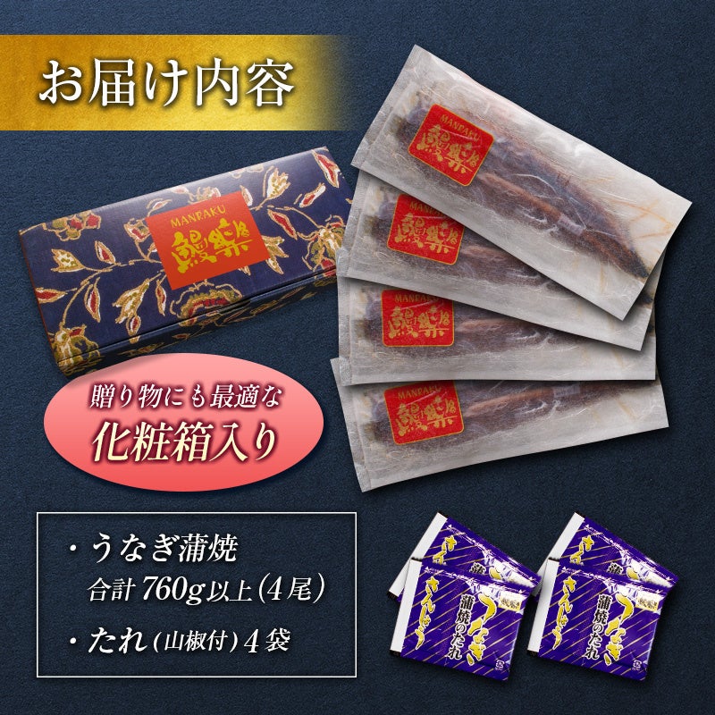 ■今だけ40g増量!!国産うなぎ蒲焼(4尾) 合計760g 新富町産鰻 【数量限定】