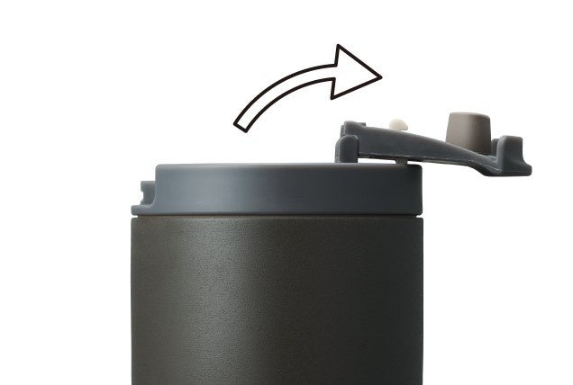 フタをスライドさせることで飲み口をロックすることが可能です。また、フタを180度広げることができるため、飲むときにフタが顔に当たらず飲みやすいです。