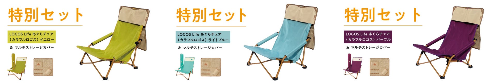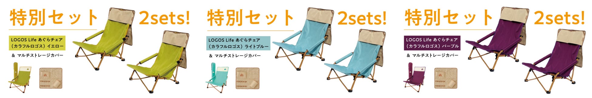 あぐらが組めるローポジションチェアからキャンプサイトを彩るカラフルな3色が登場した「LOGOS Life あぐらチェア(カラフルロゴス)」と、チェアにかぶせて便利なアイテム「マルチストレージカバー」の特別セットのクラウドファンディングを、国内最大級のクラウドファンディング「CAMPFIRE(キャンプファイヤー)」にて実施いたします。