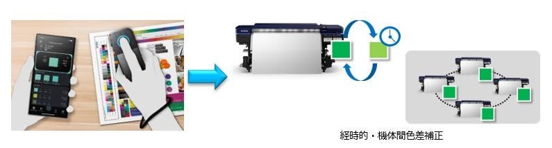 印刷物を制作する際に、色合わせ業務を課題にあげる声が聞かれます。これまでにもソフトウェアRIP「Epson Edge Print/Epson Edge Print PRO」と「SD-10」の組み合わせによりこの課題をサポートしてきましたが、この度「Epson Cloud Solution PORT」に機能を追加することで、さらに色合わせ業務の効率化を支援します。「Epson Cloud Solution PORT」と連携した「Epson Edge Print/Epson Edge Print PRO」に「SD-10」を用いて抽出した測色値をアプリ内に取り込み活用することで、経時的な色味変化の補正や複数の同一機種で発生する機体間の色差を埋めて分散印刷を実現する、「ベリファイ・キャリブレーション機能」。また、現在有償の役務サービスとして提供している「メディアプロファイル作成」がお客様自身で可能となります。各メディア・印刷モードに適した色再現を実現し、効率的なカラーマネジメントに貢献します。