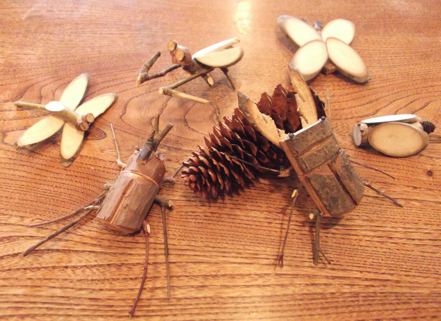 自然の木の素材をいろいろなものに見立てて、昆虫や動物など自由な形に作れます。
