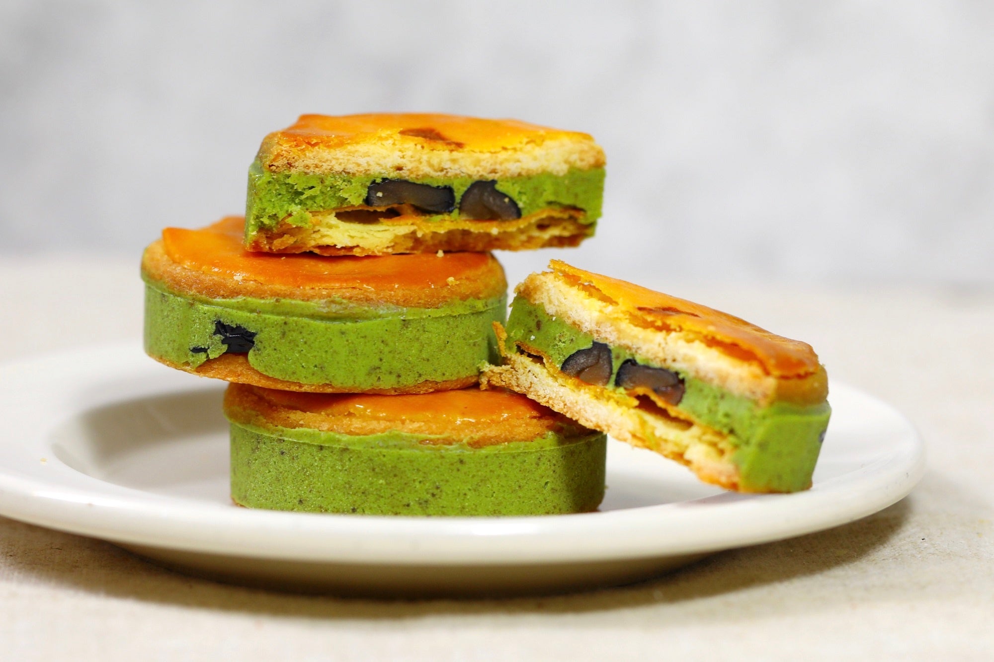 バタークリームにはホワイトチョコ、抹茶、黒豆を混ぜ合わせ、和と洋どちらの要素も兼ね備えたバターサンドに。隠し味に黒糖を合わせることで、奥深いコクをお楽しみいただけます。濃厚なバタークリームの存在感もさることながら、上品な抹茶の風味、黒豆の食感がアクセント。