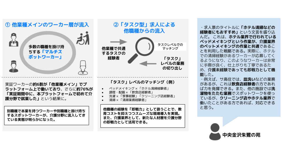 ■ 介護業界との「新しい接点」の創出と未経験層の流入 スポットワークを契機とした「長期採用」も実現