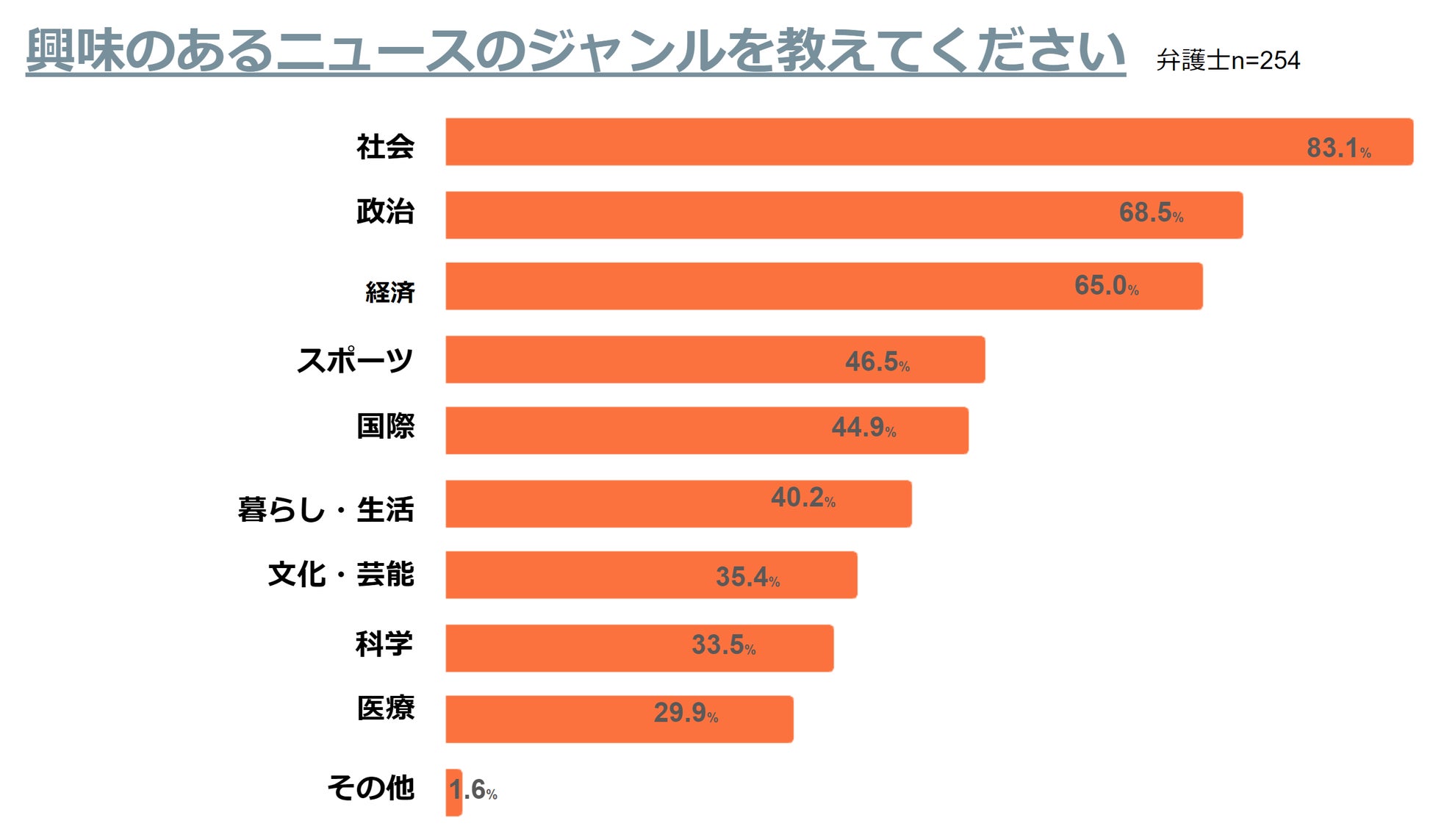 ■弁護士が興味のあるニュースのジャンルは「社会」が8割超(n=254)