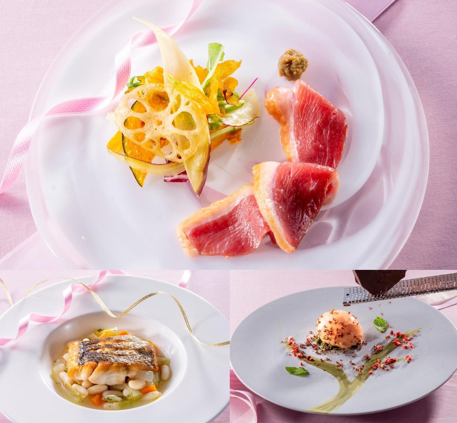 夜景と美味しい料理、上質なサービスで非日常的な体験のできるレストラン「リコモンテ」にて、料理長 後藤とシェフ青野の2人が持てる技術を持ち寄り、食材の魅力を存分に引き立てたサンクスフェアを12月より開催いたします。ローストビーフ食べ放題付きの「アトレコース」は、通常価格¥6,000のところ、火曜日~木曜日のご利用が謝恩価格の¥4,500に(前日までの要予約)。さらに、ローストビーフ食べ放題は、食事中にサーロインステーキ食べ放題に変更も可能です。デザートは、お客さまの目前で仕上げるパフォーマンスデザートです。月ごとにメニューが替わります。