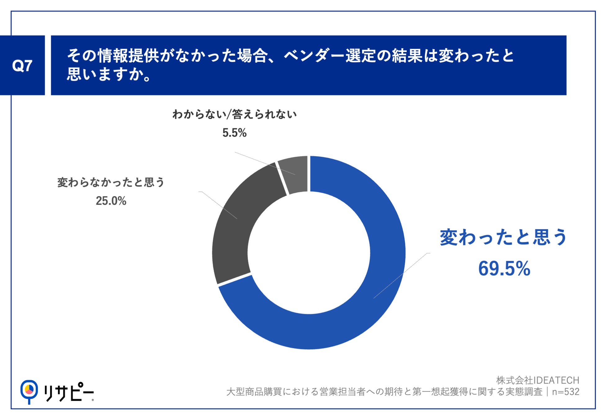 ■69.5%が「情報提供がなければベンダー選定結果は変わった」と回答