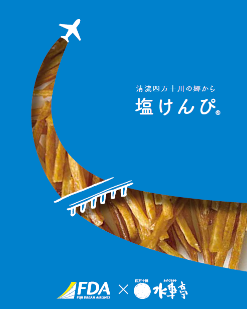 株式会社フジドリームエアラインズ(略称:FDA、本社:静岡県静岡市、代表取締役社長:楠瀬 俊一)は、『南国製菓 水車亭(みずぐるまや)』さまのご協力により、2022年8月1日(月)より『名古屋(小牧)→高知』『神戸→高知』線で、『塩けんぴ』を提供いたします。