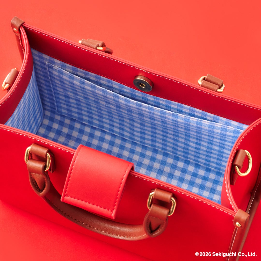 レトロガーリーをイメージした、赤のチェック柄にオリジナルのデザインを使用した