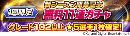 1回だけ引くことのできる、無料11連ガチャです。グレード102以上の★5選手カードが1枚確定で獲得できます!