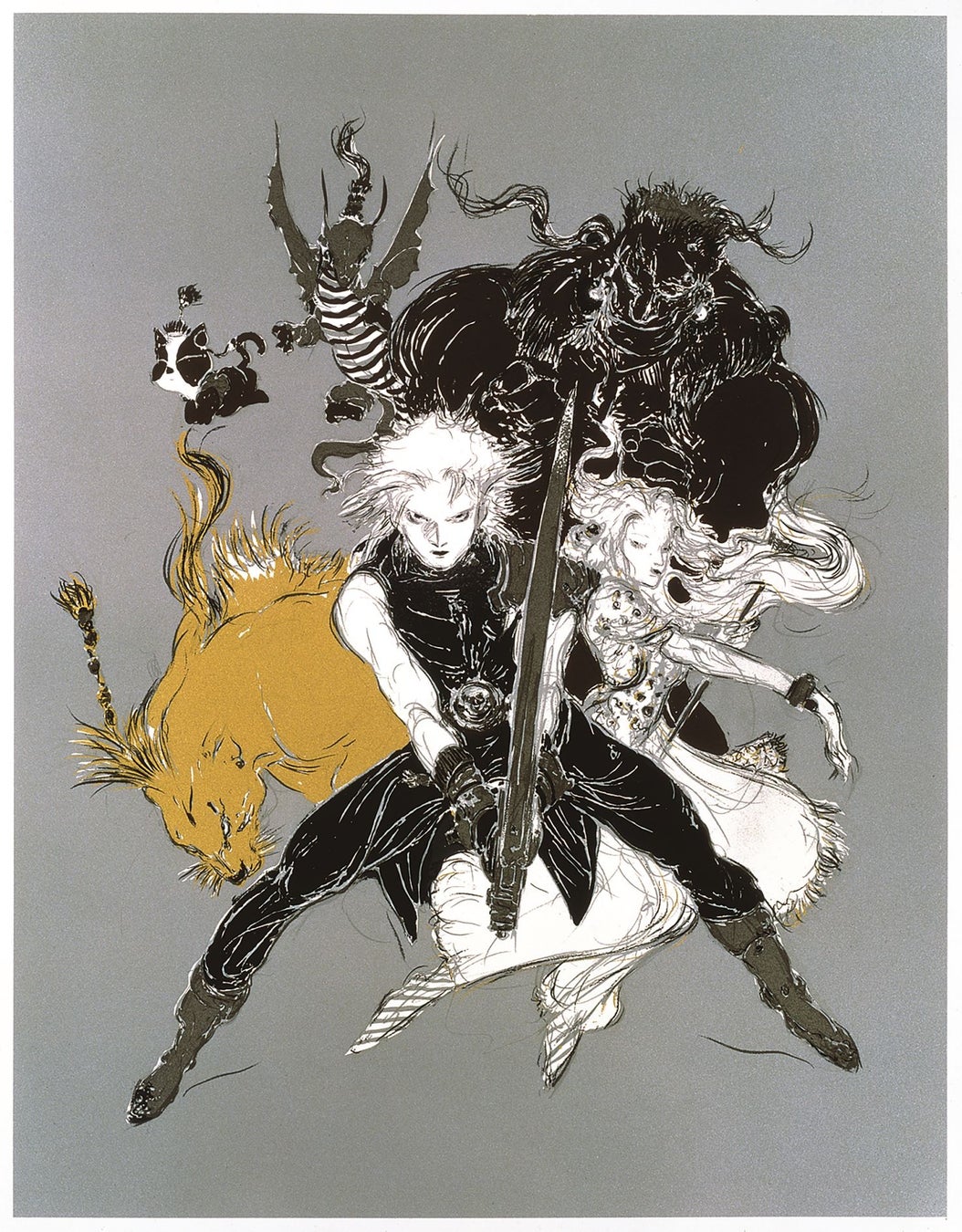 また、リメイクの続編も期待されているファイナルファンタジーⅦのイメージイラスト作品「挑」を展示販売します。1997年に制作した本作は天野喜孝作品の中でも人気のある貴重な作品です。