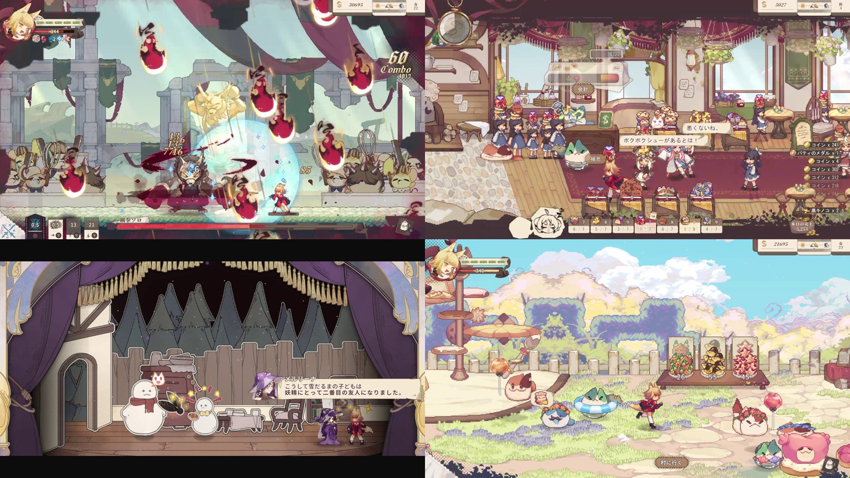 『Aeruta(アルタ)』は、島中を冒険するアクションパートと、パン屋の経営シミュレーションパート、二つのゲーム要素を併せ持った2Dドット絵のハイブリッドRPGです。