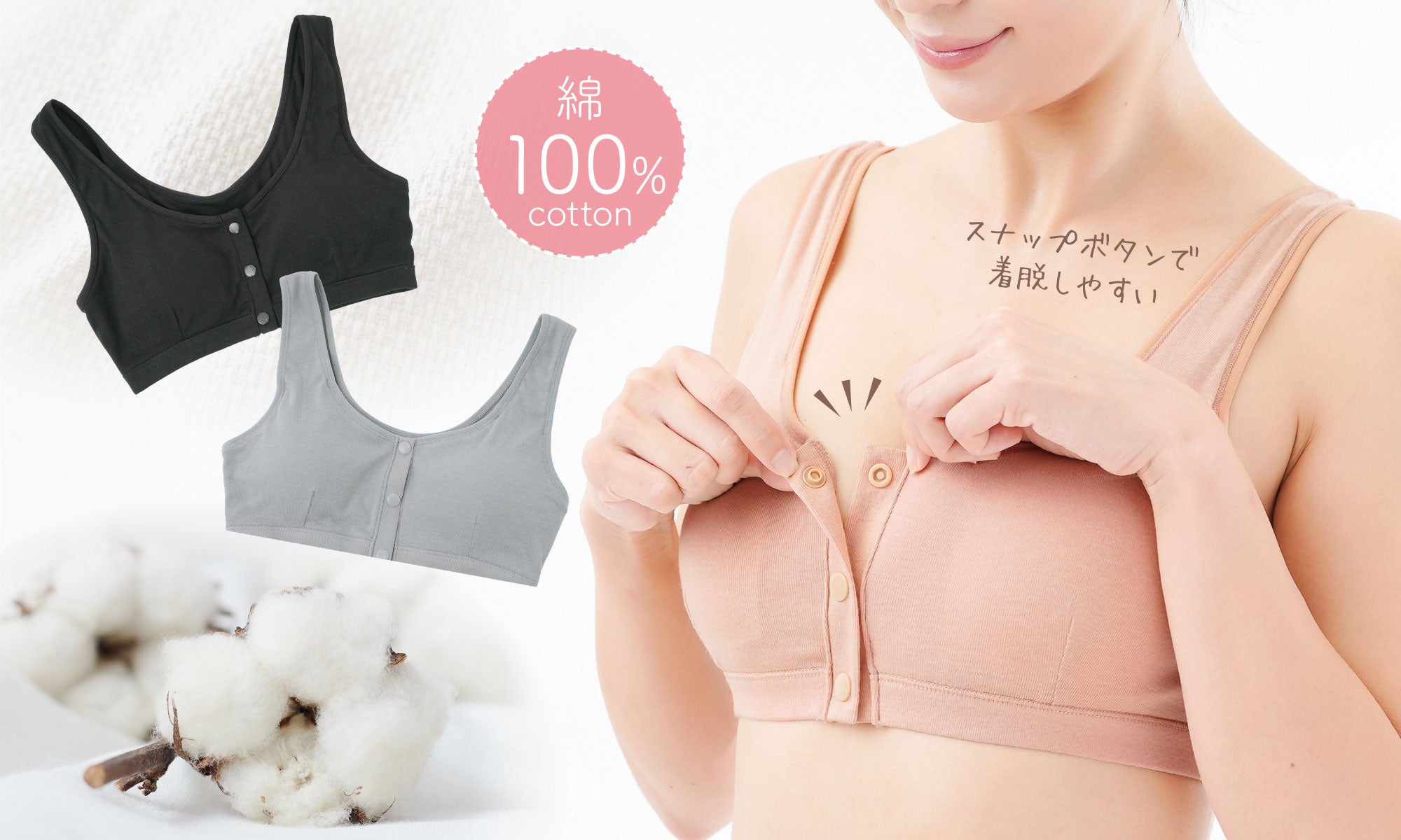 株式会社ニーズ/株式会社サンファミリー(本社:兵庫県加古川市、代表取締役:本岡勝則)は、「綿100%前開きらくらくブラ」1,408円(税込)を4月20⽇(月)より発売開始しました。