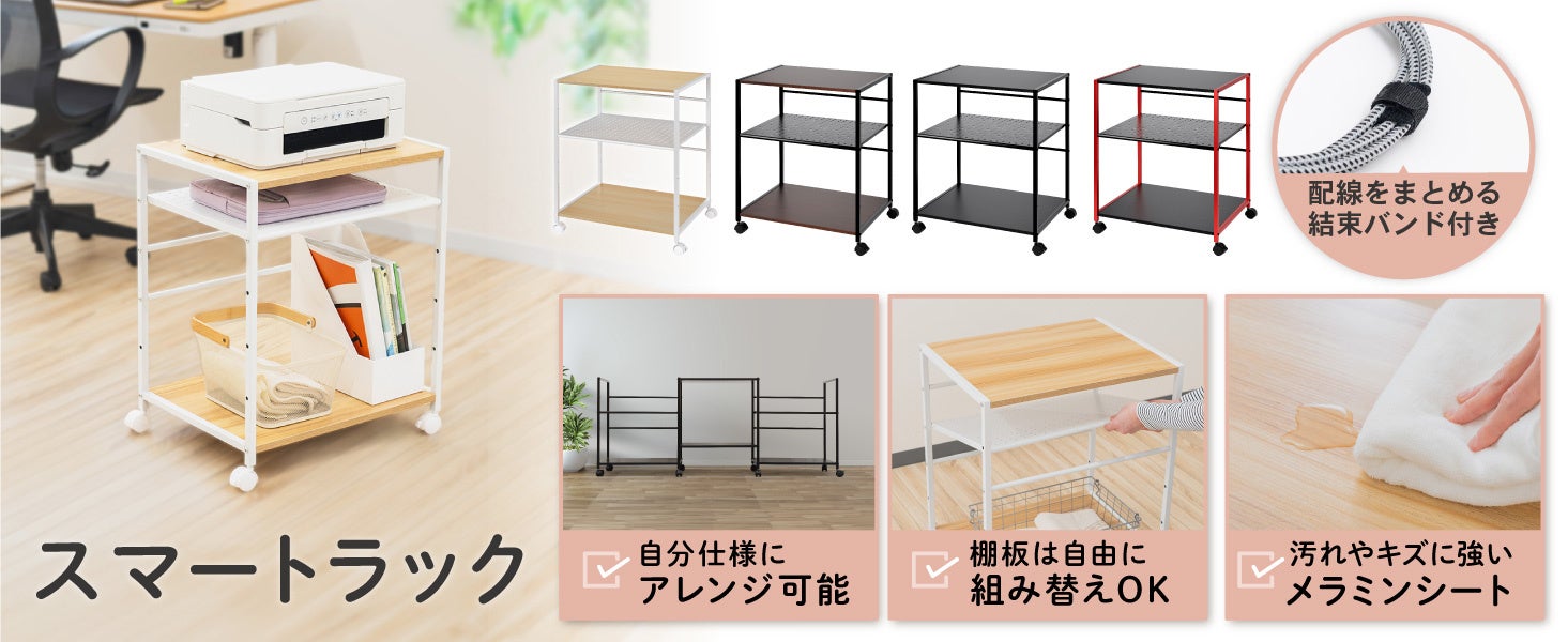 「カスタムできるスマートラック」は、デスクスペースにシンデレラフィットするカスタム性と、2台以上合体して、さらにスペパを高くできるなど、細部にまでこだわって完成した一品です。軽く扱いやすい設計で、高性能を求める方にも満足いただける仕上がりです。