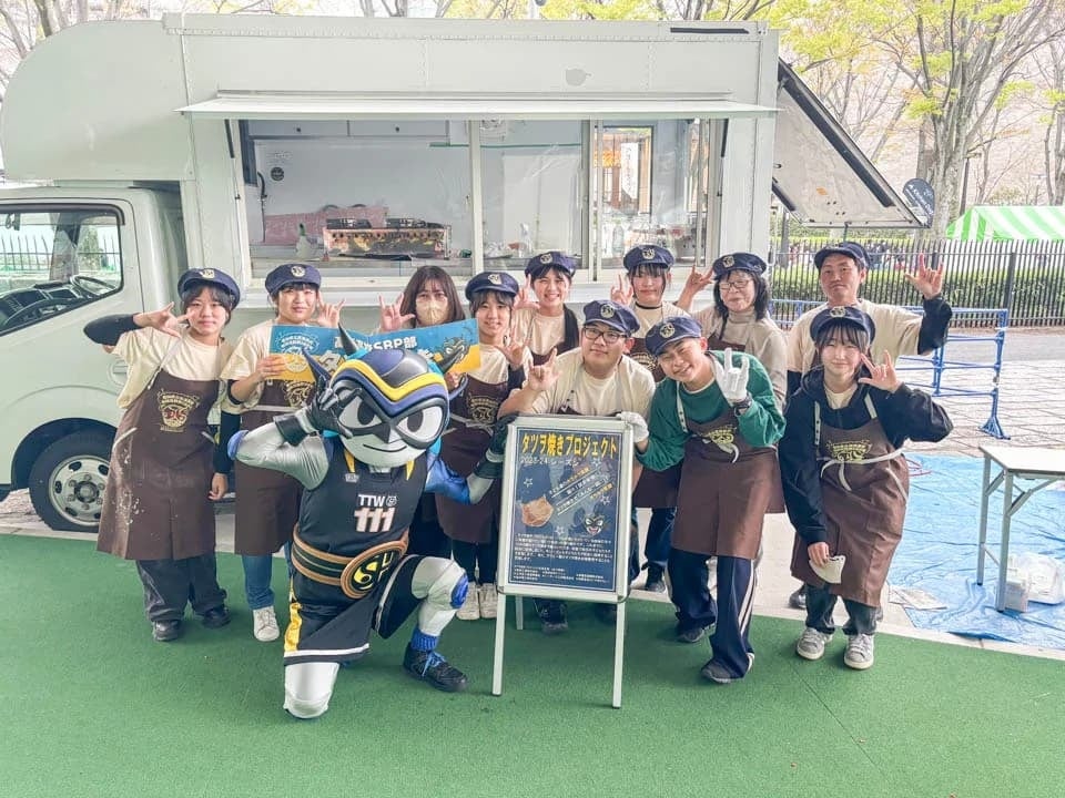 高校生が主体となって、地域の課題を地域資源(ひと・モノ・産業など)を活用し、ビジネス手法を用いて解決を目指している高浜高校地域活動部SBP班(ソーシャル・ビジネス・プロジェクト)と、弊社所属タレント「タツヲ」が手を組み、地域の皆さまに笑顔を届けたいという想いで2019年にスタートした『タツヲ焼きプロジェクト』。