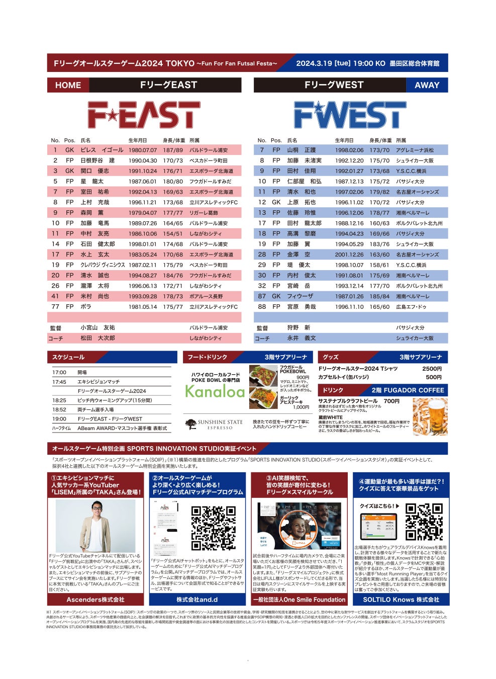 <Fリーグオールスターゲーム2024 マッチデープログラム>