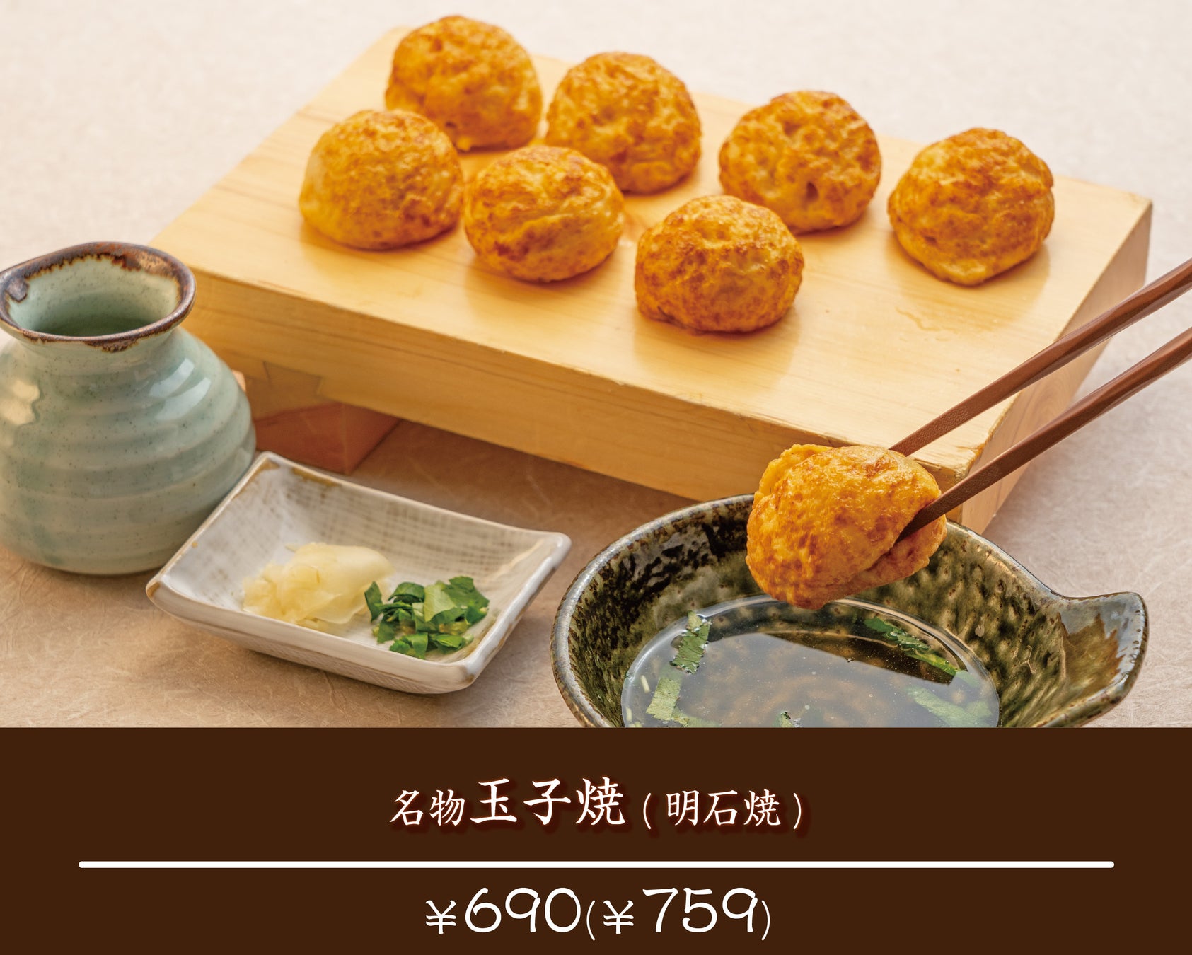 「暮らしを彩る」をコンセプトに、「焼きたての玉子焼(明石焼)」と「毎日お店で丁寧に引くお出汁」にこだわり、おいしいお食事を少しずつ楽しんでいただくことで、普段の生活の中で小さな幸せを感じていただけるお店となるよう、2022年にリニューアルしました。