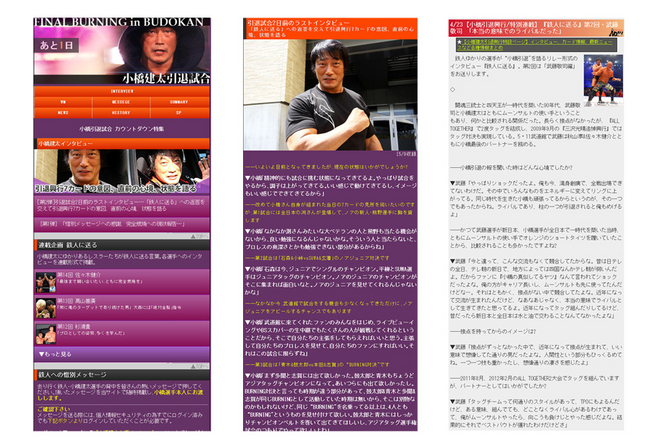 バトル総合情報サイト『プロレス/格闘技DX』では、引退興行直前のインタビュー、