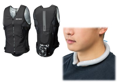 わずか約60mLの水がパッド内を循環するタンクレス設計による軽量化と、ペルチェ素子を用いて一定温度での冷却を実現した冷却服です。