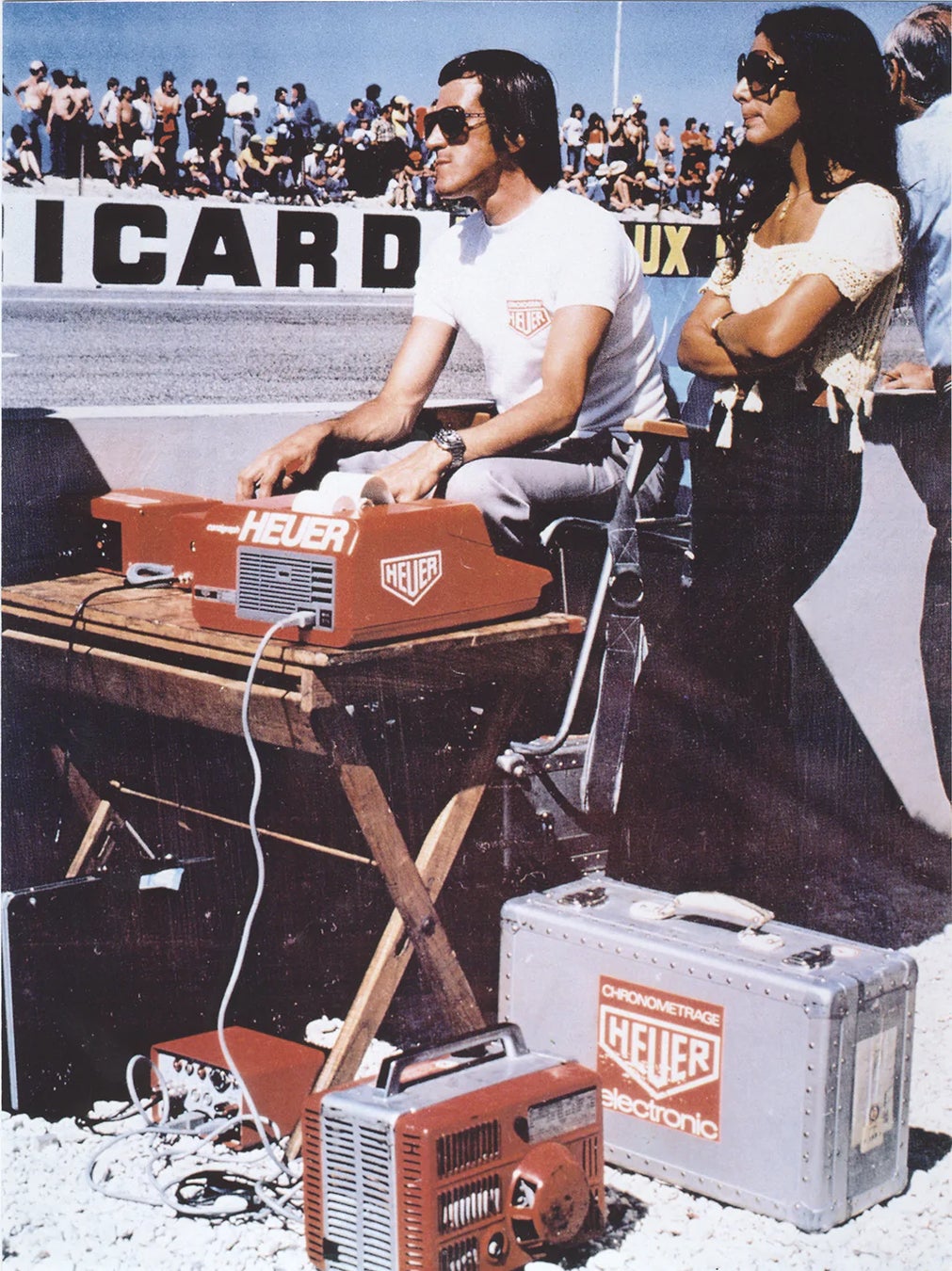 「ル・マン・センチグラフ」とともにその操作者として名を馳せたホイヤーの社員、ジャン・カンピチェは、モータースポーツ計時の世界で「ピアニスト」の異名を持つ伝説的な人物で、フェラーリチームとともに世界中を飛び回り、ピットウォールからは独立した計時を行い、1975年にはニキ・ラウダとともにフェラーリがドライバーズとコンストラクターズの両方のチャンピオンシップを制覇するのに貢献します。BRM、マクラーレン、サーティースといった他のチームも、この計時ソリューションの成功を目の当たりにすると、自分たち用に同じ計時機器が欲しいと熱望するようになります。