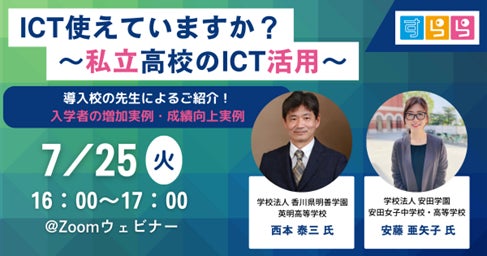 <私立学校向け> ICT活用事例オンラインセミナー「入学者増加を実現!2校の先生に聞く、学校の独自性を創造するためのICT活用とは?」7月25日16時より開催