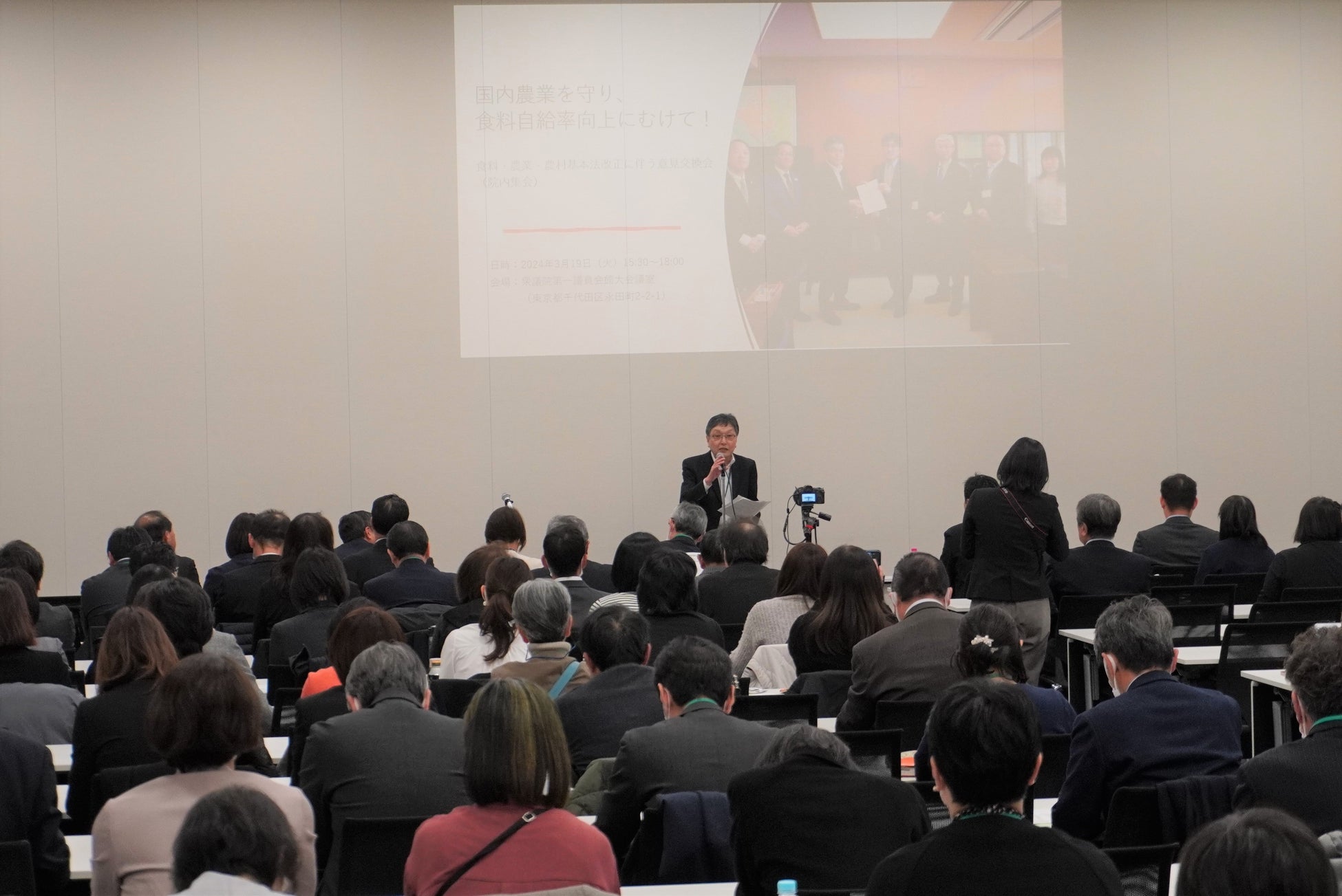 政府が成立を目指している「食料・農業・農村基本法」の改正案を受け、国内で活動する生活協同組合6グループは3月19日(火)、農林水産省を訪問し舞立昇治政務官へ提言書を手渡しました。その後、衆議院第一議員会館で意見交換会「国内農業を守り、食料自給率向上へむけて!」を開催し、提言を発表するとともに意見を表明しました。
