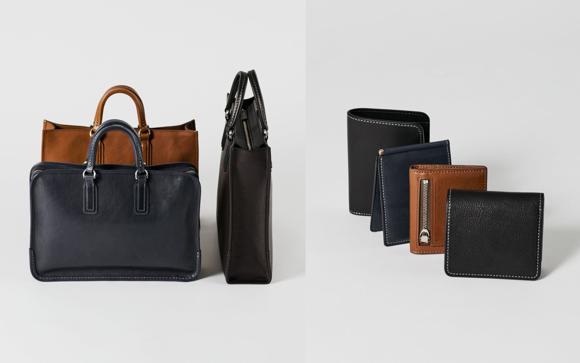 ラインアップはトート2型、ブリーフ1型、二折財布3型のほか、マネークリップ、カードケース、シューホーンを加えた計9型を展開。いずれも全国の「TSUCHIYA KABAN」14店舗および自社オンラインストアにて販売いたします。
