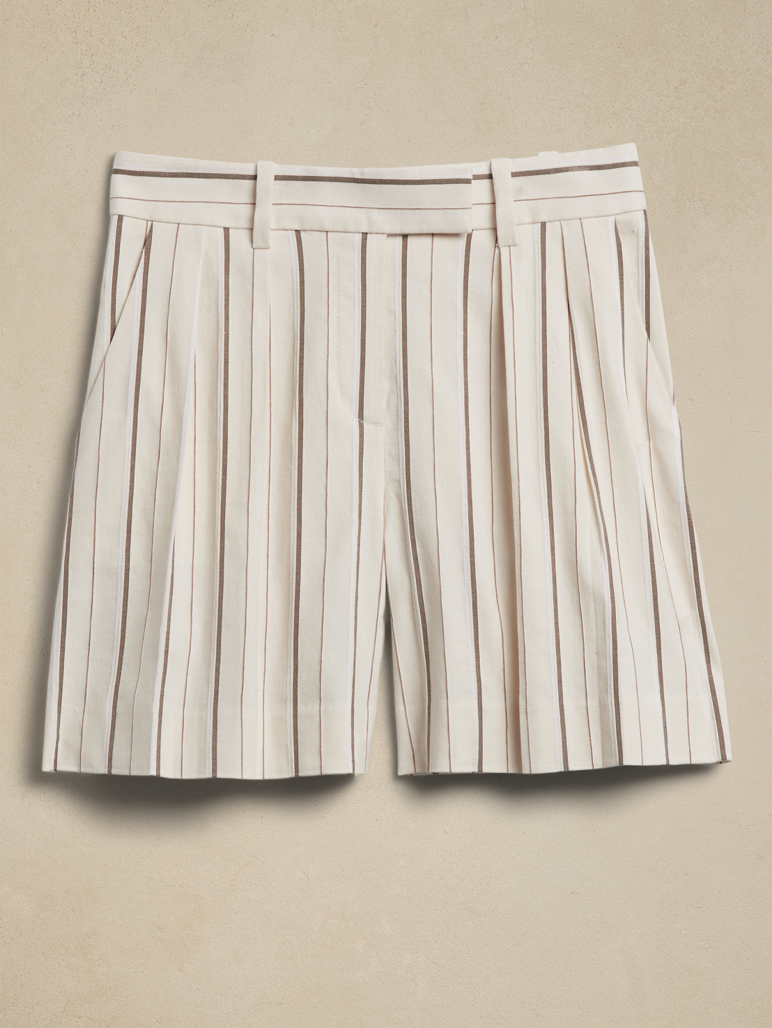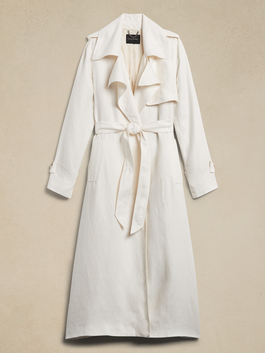 リネンのスーチングコレクションから、ストライプブレザー×シーンによって選べるウルトラハイライズワイドパンツ×ショートパンツの3ピースセットアップをはじめ、オーバーサイズのロングベスト×ワイドパンツ×バミューダパンツなど、ライフスタイルに合わせて自在にセレクトをお楽しみいただけるセットアップが充実。春の装いに欠かせないトレンチコートもリネン素材を取り入れ新登場。クリーンな印象のホワイトと着回ししやすいクラシックなオリーブで展開します。