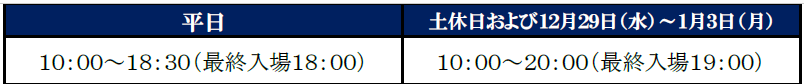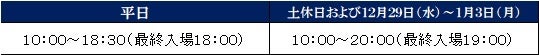 【土休日および12月29日(水)~1月3日(月)】