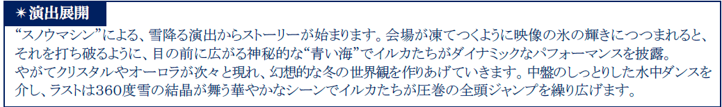- 2.幻想的な冬の世界で、イルカたちの躍動が魅せる「ドルフィンパフォーマンス」