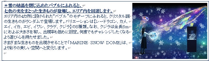 そこで当館は、品川駅から徒歩約2分と近場で快適な屋内型というハード面のメリットと、最先端テクノロジーを用いた展示演出の強みを活かし、暖かな館内で“冬の絶景”と生きもののリアルな魅力が一同にお楽しみいただける“冬のレジャー”を提案します。