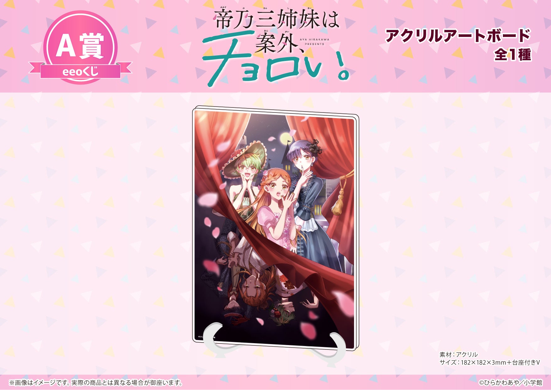 アクリルアートボードのデザインはドレス姿でエレガントな帝乃三姉妹、そして天才オーラを放つ帝乃三姉妹を描いたものに♪