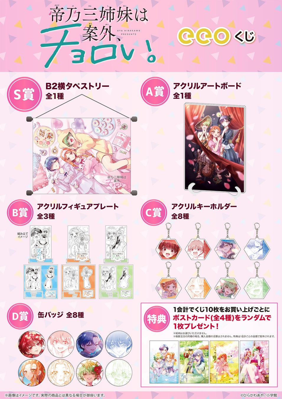 まさにチョロかわいい!『帝乃三姉妹は案外、チョロい。』の「eeoくじ」にはS賞からD賞までの景品が登場