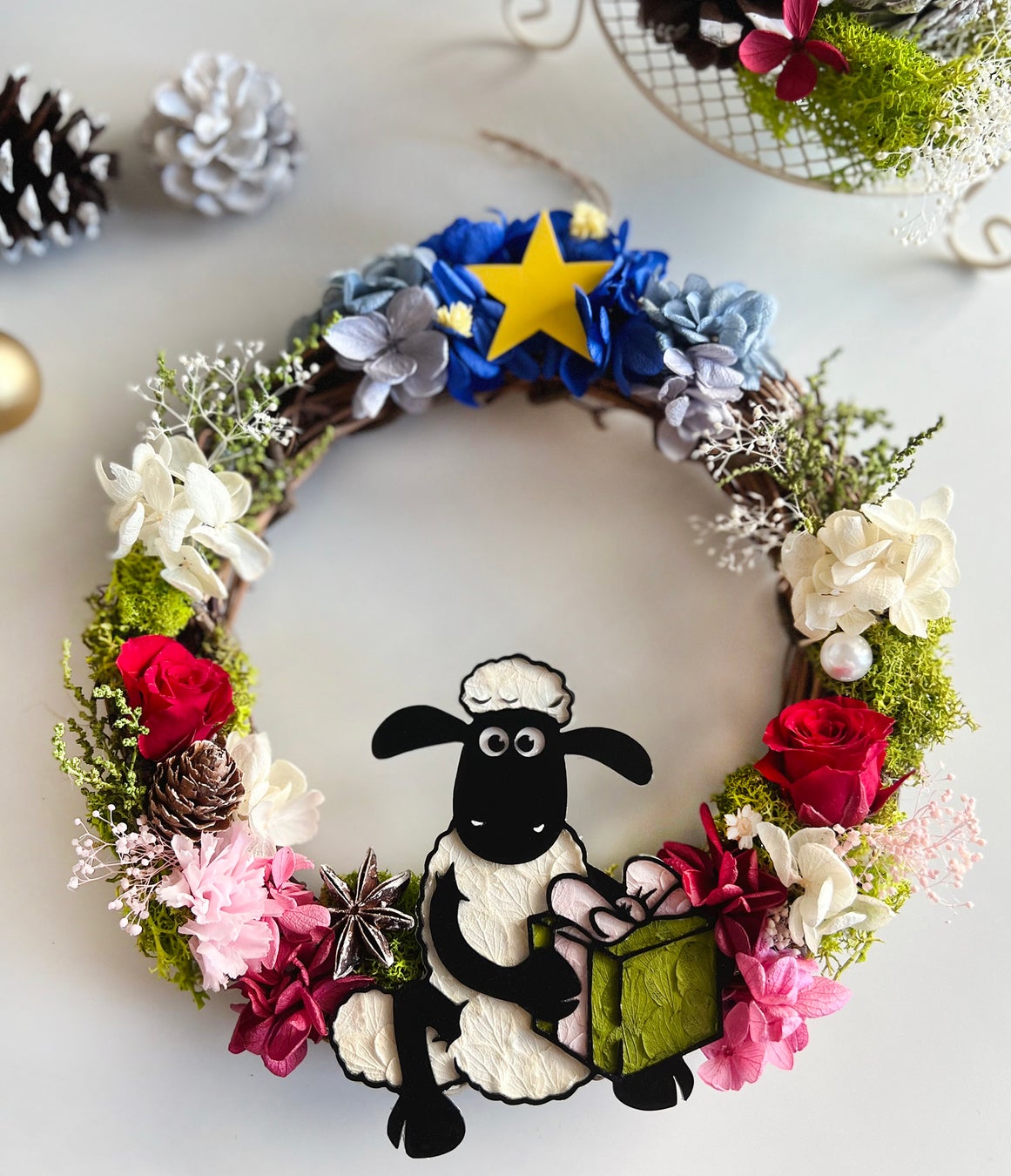 飾るだけでもこもこのショーンに癒される!?水やり不要で枯れないプリザーブドフラワーで描いた「ひつじのショーン」のフラワーアレンジメントが登場。
