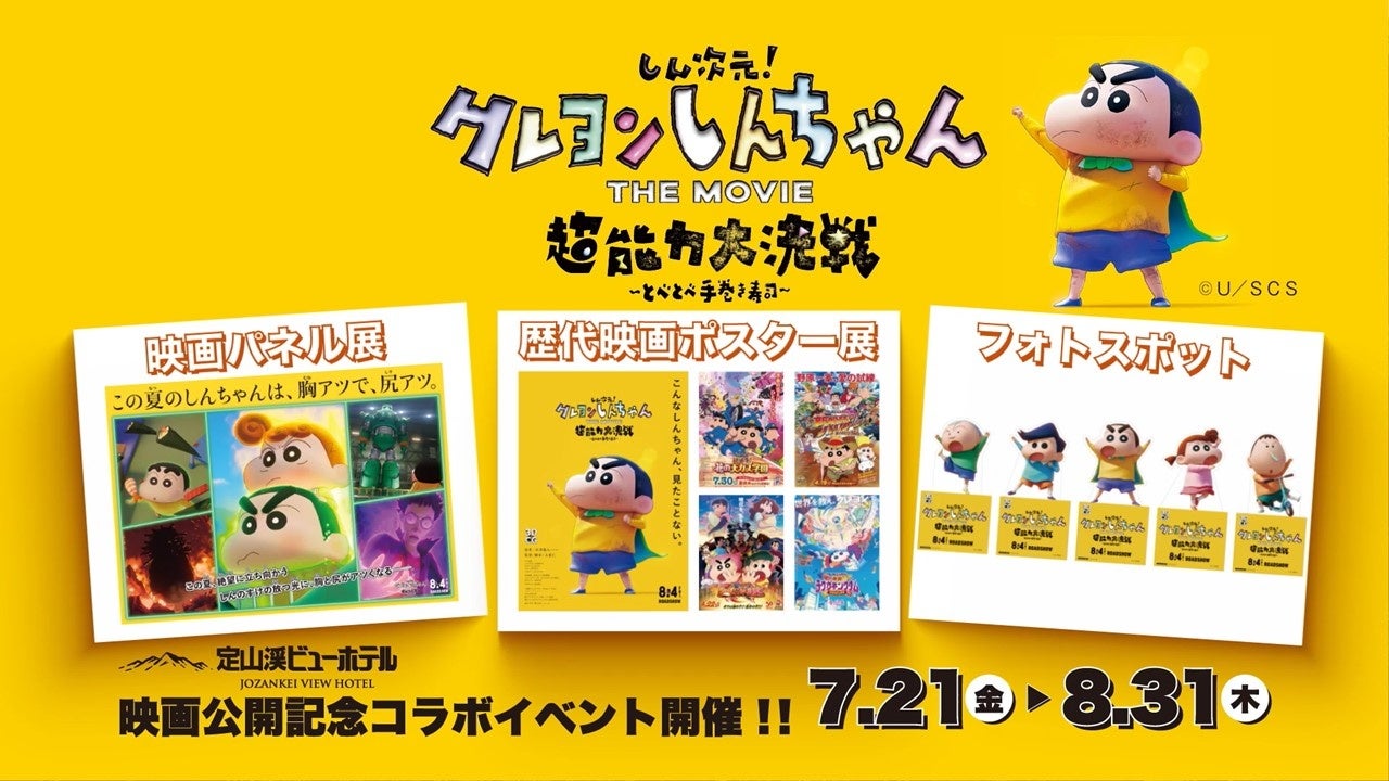 また、これを記念して、7月21日(金)~8月31日(木)の期間、定山渓ビューホテル館内にて『しん次元!クレヨンしんちゃん THE MOVIE 超能力大決戦 ~とべとべ手巻き寿司~』スペシャルイベントも開催します。