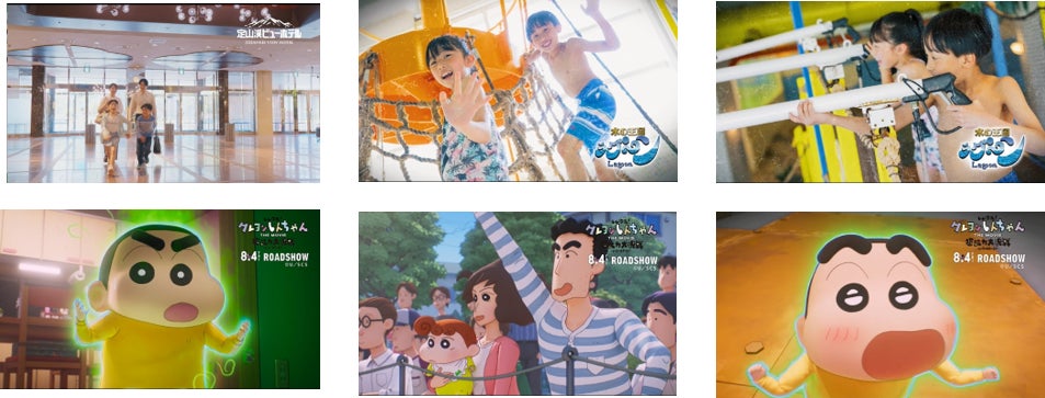 この度のCMは、8月4日(金)より公開の映画『しん次元!クレヨンしんちゃん THE MOVIE 超能力大決戦 ~とべとべ手巻き寿司~』とのコラボを実現。定山渓ビューホテルの「夏休み・ラグーン」の映像と『しん次元!クレヨンしんちゃん THE MOVIE 超能力大決戦 ~とべとべ手巻き寿司~』の最新劇中映像が、あのお馴染み「ラグーンの歌」にのって登場。「ラグーンの歌」と「クレヨンしんちゃん」の初共演です。