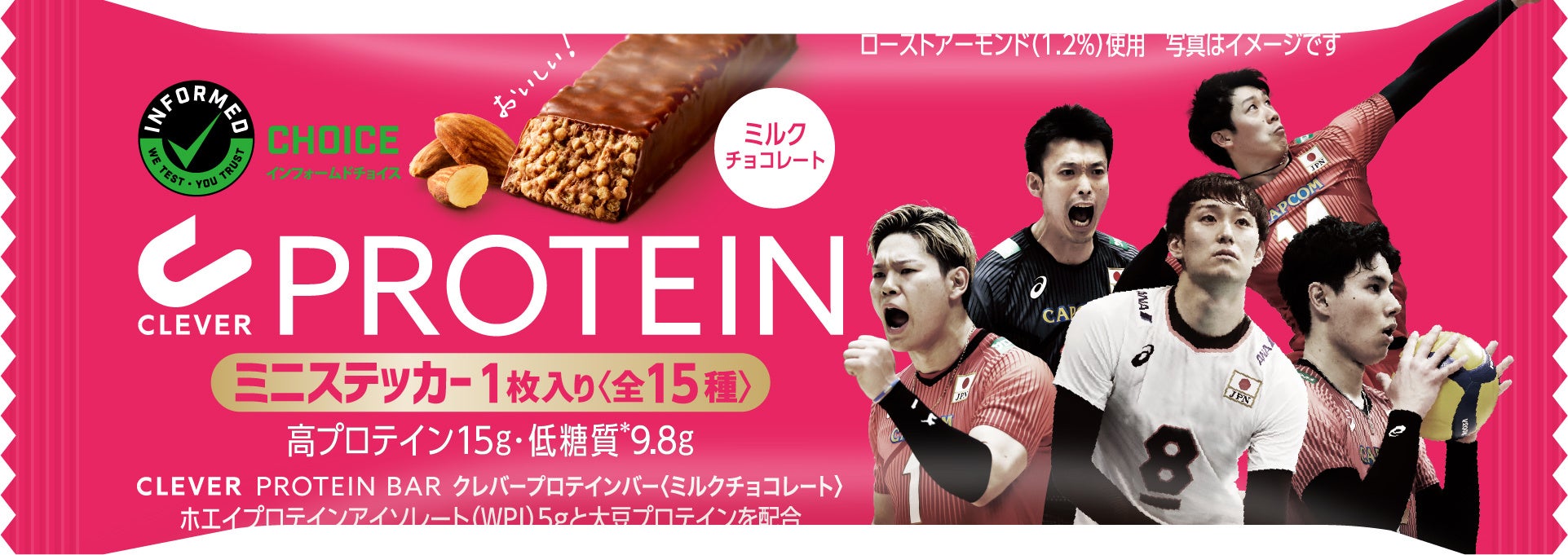 日本代表を支える高品質プロテイン「CLEVER(クレバー)」から『バレーボール男子日本代表 応援プロテインバー』発売!選手のミニステッカー<全15種>入り!