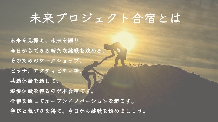 コミュニティ活動を大切にしていることもあり、未来プロジェクト同士の連携も促せるよう、統合支援する会社(https://prtimes.jp/main/html/rd/p/000000366.000018590.html)の設立も準備中です。
