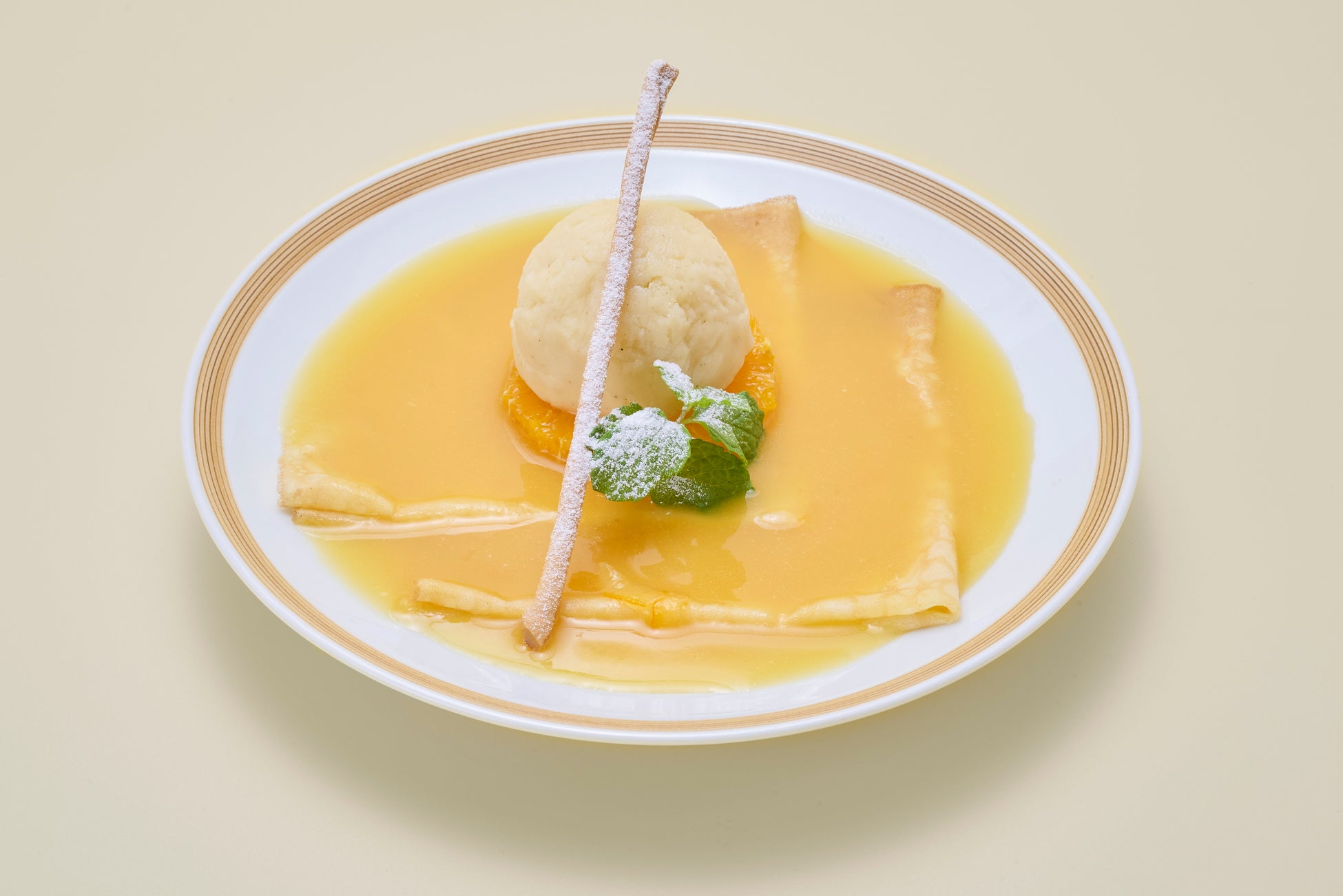 「日本橋だし場 はなれ」では、かつお節を使用した料理に力を入れていますが、食後のデザートまで楽しんでいただきたいという思いから、マーマレードを使ったクレープシュゼットを考案しました。