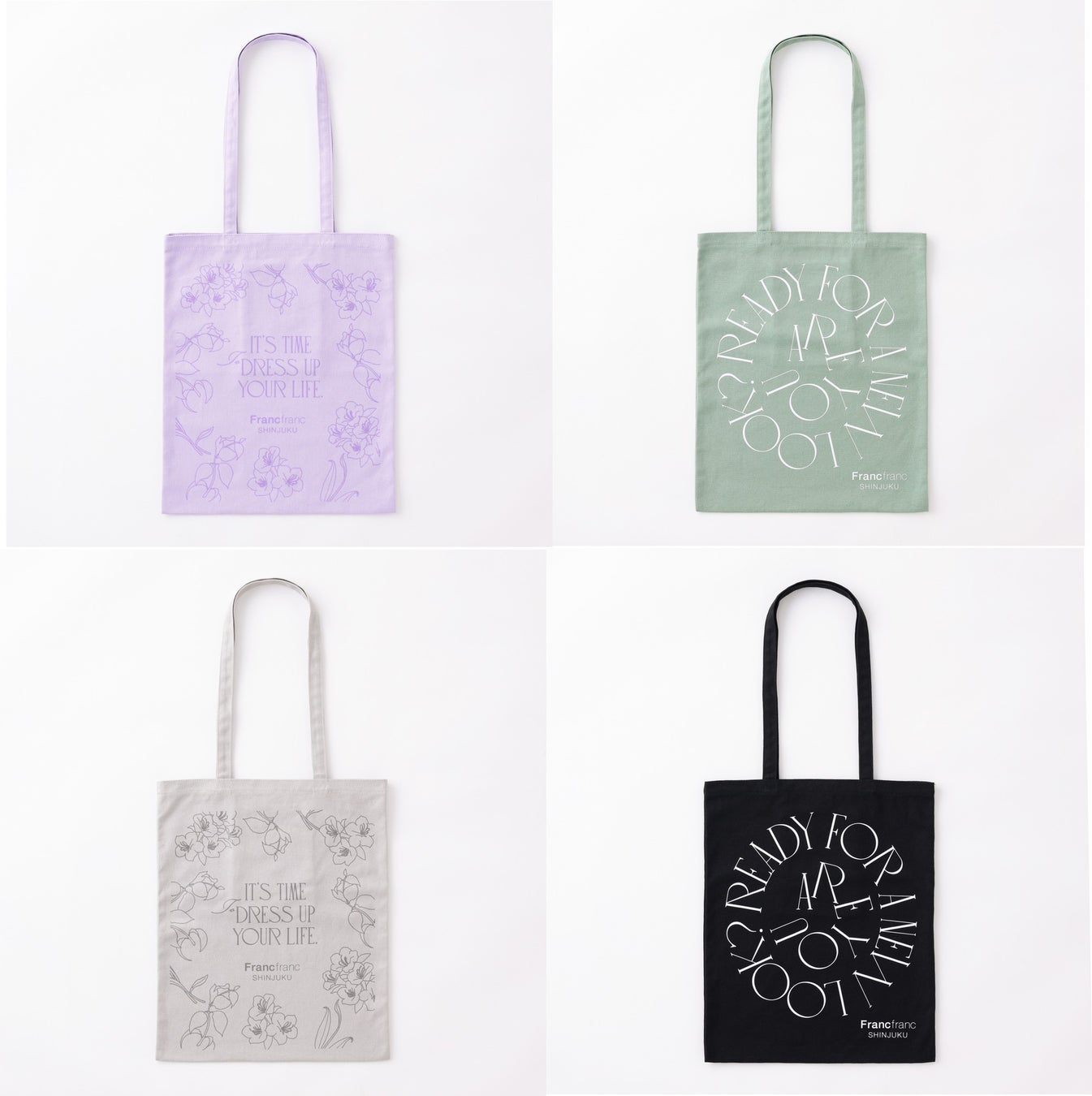 各店舗のリニューアルオープンを記念して、税込3,000円以上をご購入のお客様に店舗の外観をデザインしたオリジナルートバッグをプレゼントします。Francfrancのデザイナーが手描きで仕上げた特別なイラストをあしらったトートバッグで、リニューアル店舗でのお買い物をより特別な思い出にしませんか?