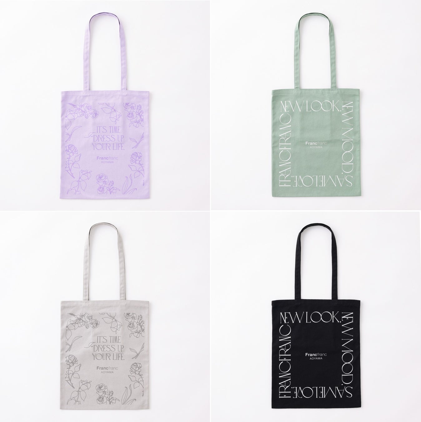 リニューアルへのメッセージをデザインした限定トートバッグです。それぞれのリニューアルにふさわしい特別なメッセージをあしらいました。ブランドの旗艦店となる青山店には、新しい姿とお客様への変わらぬ想いを込めた「New Look, New Mood, Same Love.」、 新宿店には、店舗の“新しい外観”とお客様の“新たなスタイル”のダブルミーニングを込めた「Are You Ready for a New Look?」を採用。スタイリッシュもフェミニンも叶える4つのデザインとカラー展開で、お出かけを華やかに彩ります。