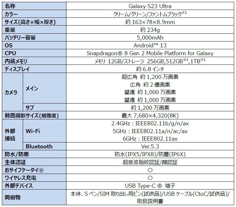 「Galaxy S23 Ultra(512GB※/1TB※)」