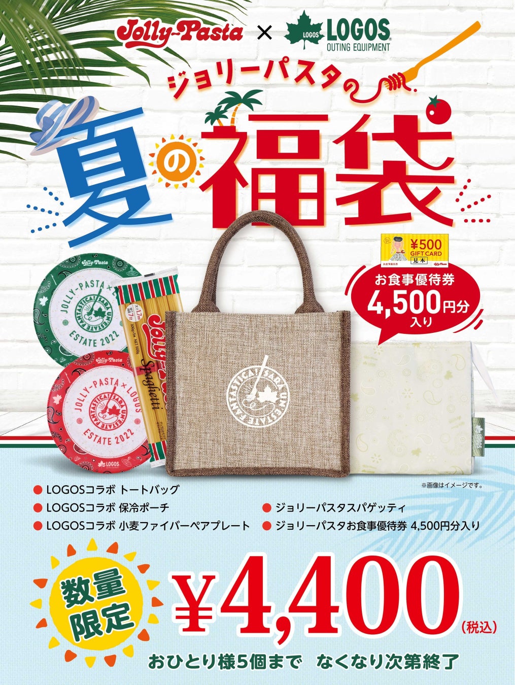 LOGOSとジョリーパスタが初めてのコラボレーションを実現!「ジョリーパスタ×LOGOS コラボ 夏の福袋」数量限定で登場!