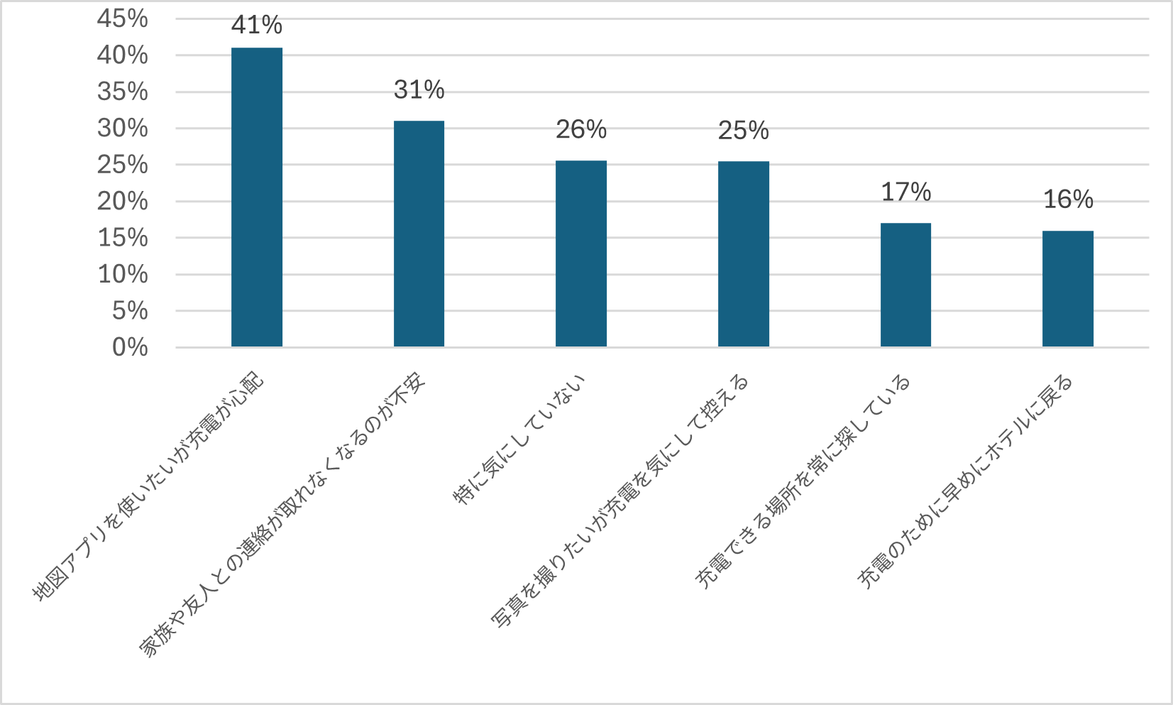 地図アプリを使いたいが充電が心配: 41%
