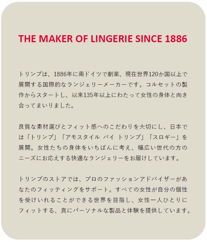 日も短くなり始めてほんのり秋の気配も感じる今日この頃。秋冬本番を迎えてから「寒っ!」となる前に、今からあったか対策を考えておきませんか?トリンプのインナーは、下着メーカーならではの機能性の高さが自慢。さまざまなシーンや着こなしに対応します。