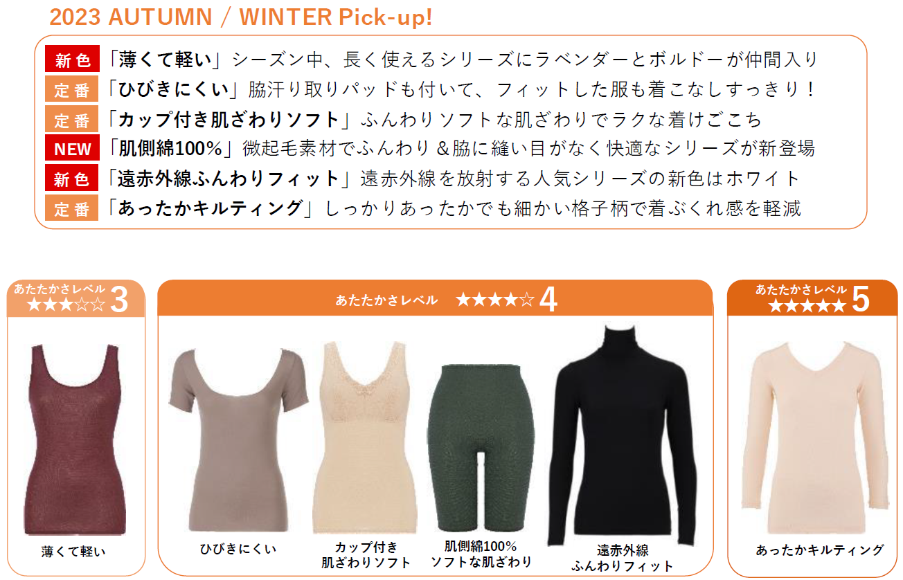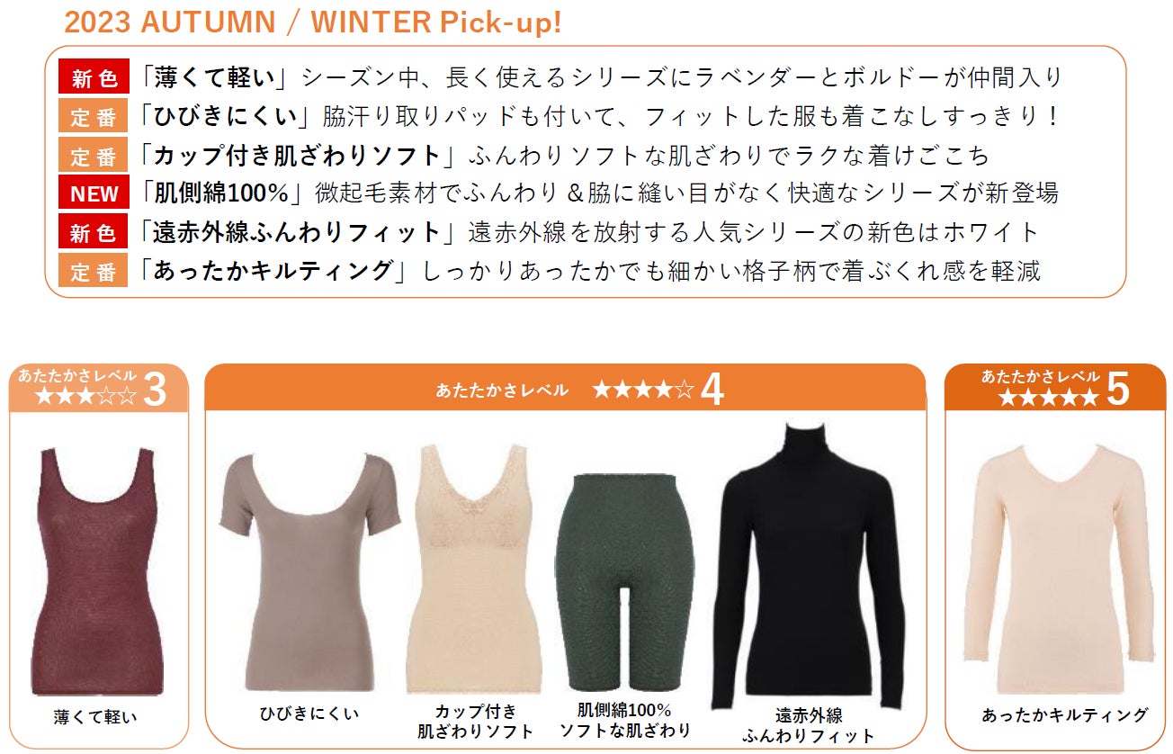 「秋冬インナーは1種類しか持ってない」は、そろそろ卒業。あたたかさレベル×機能×デザインの豊富なバリエーションで使い分けて、あったかインナーの達人を目指しましょう!